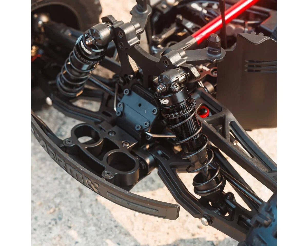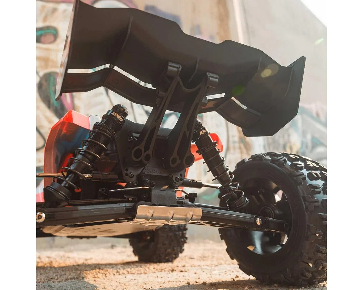 The 1/8 scale ARRMA KRATON 6S BLX 4X4 is renowned for its speed and durability, now taken to greater extremes with upgrades that enhance its performance and toughness. Key improvements include a reinforced EXB chassis, stronger differentials, front bumper, skid plate, and wing mount, along with added side guards and a two-piece tower-to-tower brace for easier maintenance. Equipped with a 6S-capable Spektrum brushless system, it achieves real-world speeds of over 65 mph, while its waterproof electronics ensure reliable performance in any conditions. The KRATON's design also includes a quick-release body system and a powerful Firma 150A Smart V2 ESC. Whether you’re using a 4S or 6S LiPo battery, the KRATON offers thrilling speed and bashing performance, with throttle limiting features on the Spektrum SLT3 transmitter for smooth transitions into high speeds. Whether on asphalt, dirt, or gravel, the KRATON delivers exceptional control and extreme bashing fun, making it the ultimate choice for adrenaline-fueled monster truck enthusiasts.
