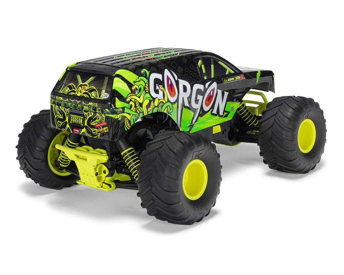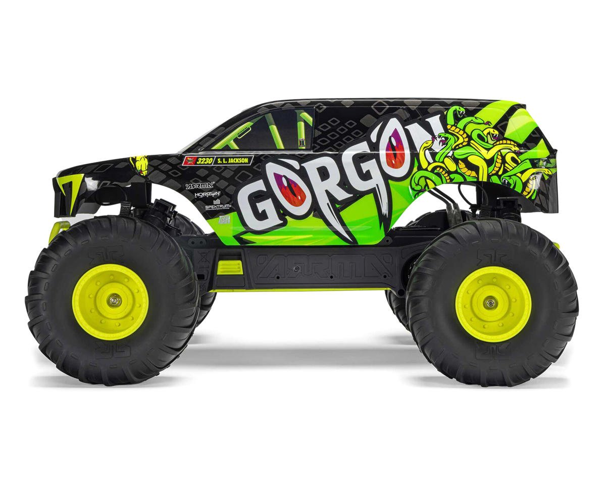 Blast beyond routine RC with a monster truck that's built the way only ARRMA® makes them — tough as nails, full of attitude, and capable of pushing past anything in your path. Fully assembled and ready to run, the 1/10 scale ARRMA GORGON™ MT is perfect even for young, first-time bashers and a fun addition to any hobbyist's fleet of RC vehicles. It's fun to drive, affordable to own, and easy to upgrade with LiPo batteries and brushless motors whenever you're ready for next-level performance.