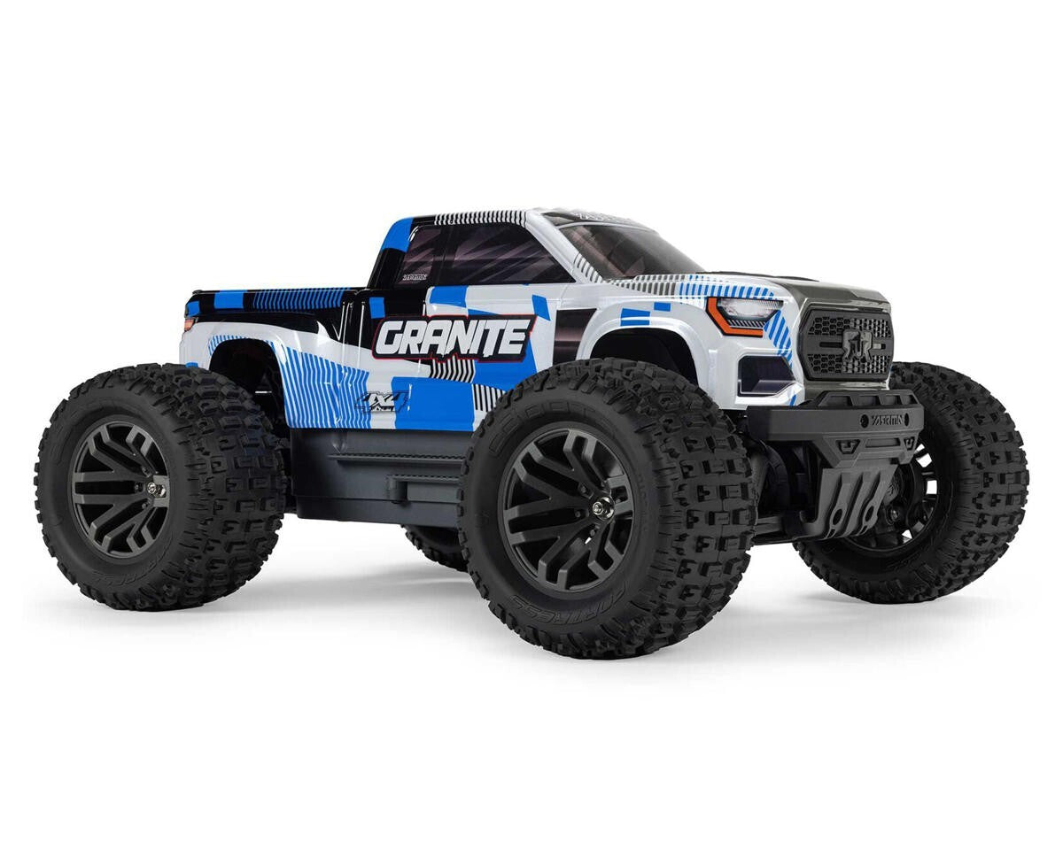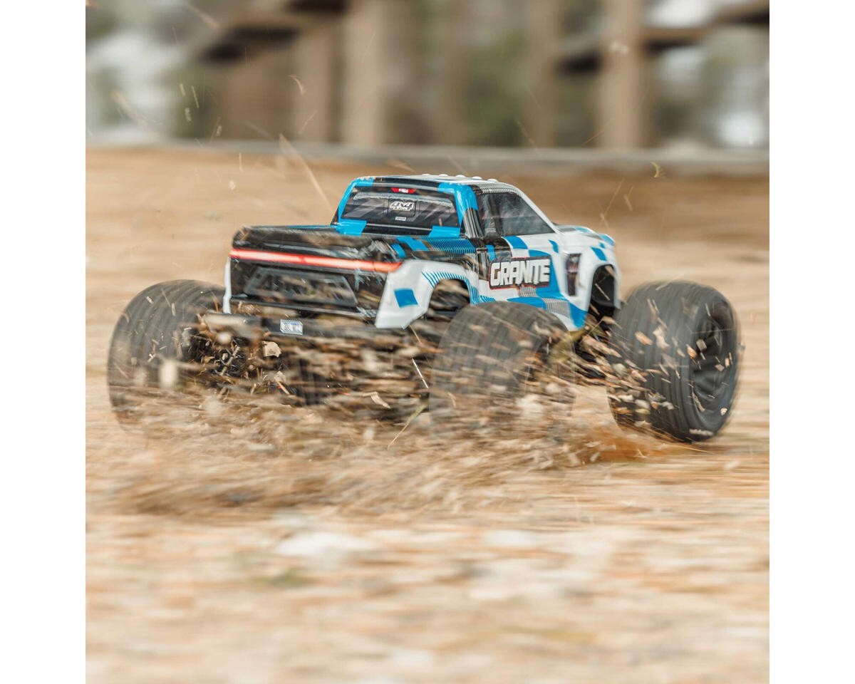 The Arrma Granite Mega 665 1/10 4WD Brushed Electric Monster Truck has been designed for ground shaking fun! Built for off-road fun, this Granite has been given a large, 665 size brushed motor to take your bashing to the next level.
