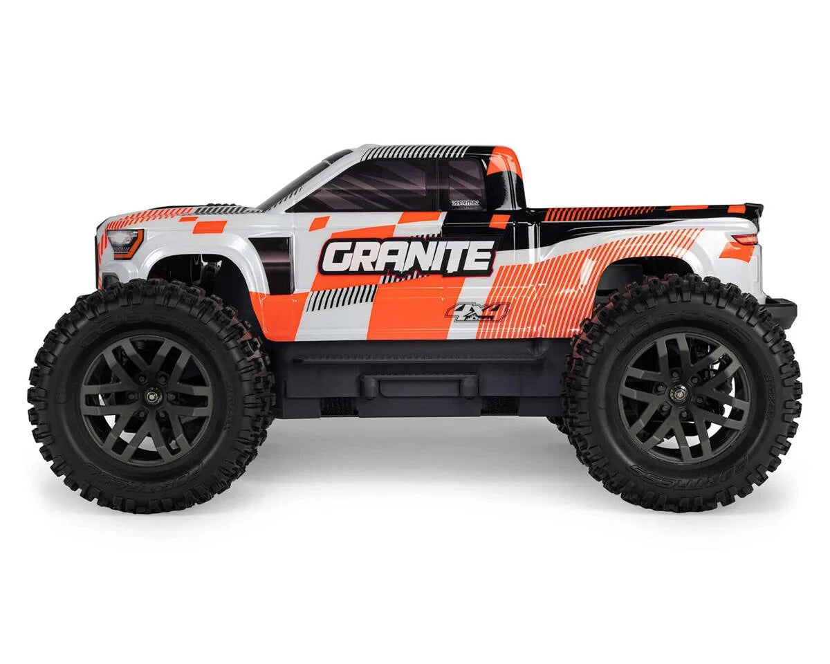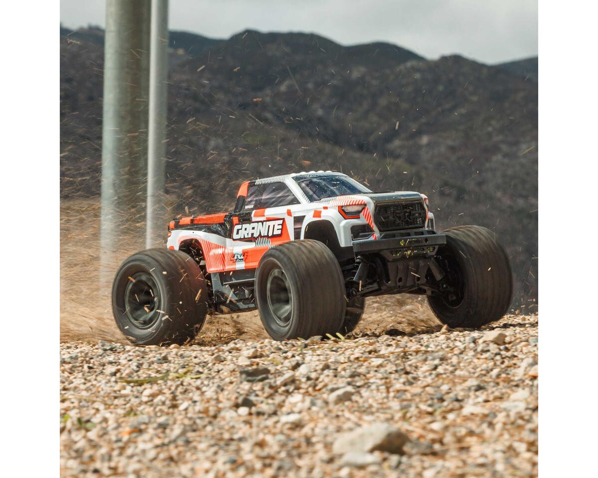 The Arrma Granite Mega 665 1/10 4WD Brushed Electric Monster Truck has been designed for ground shaking fun! Built for off-road fun, this Granite has been given a large, 665 size brushed motor to take your bashing to the next level.