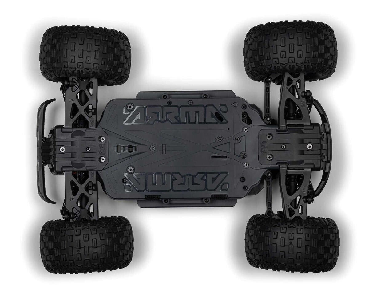 The durable chassis is ventilated to keep onboard components cool. Larger side guards provide maximum protection from dirt and debris. Adjustable suspension and oil-filled coil over shocks soak up bumps. With a 3S brushless-ready transmission included as standard, the Arrma Granite 665 4x4 is equipped for an easy upgrade to brushless power for greater efficiency and higher power whenever you’re ready.