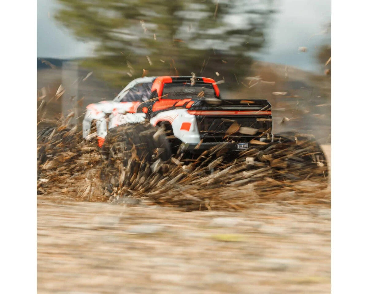 The realistically styled Granite Mega 665 4x4 monster truck body is held securely in place by a hidden clipless body retention system. This ensures your body stays in place, looking great during any bash session.