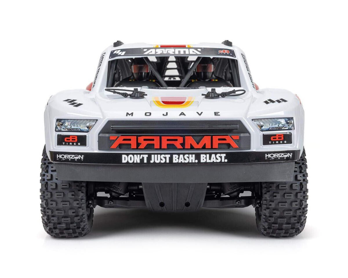 Go brushless bashing in a big way with the affordable ARRMA® MOJAVE™ 4S BLX 4X4 Desert Truck RTR. It’s got it all — legendary toughness, dynamic handling, and the brutal speed of a Spektrum™ 4S-ready brushless power system that’s capable of 50+ mph under optimum conditions. Even better, this high-performance package comes wrapped in exciting 1/8 scale desert truck realism, complete with a detailed cockpit plus a roll cage and roof rails!