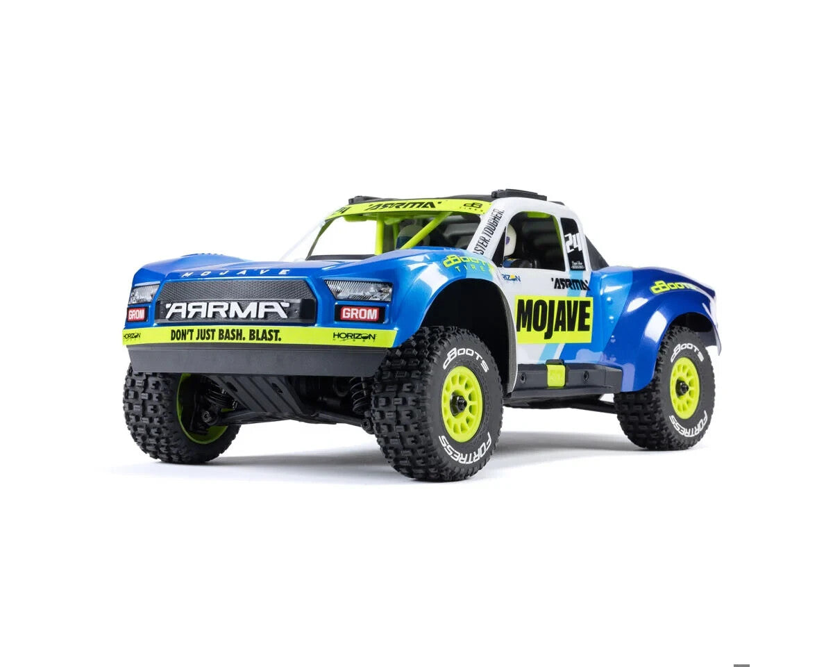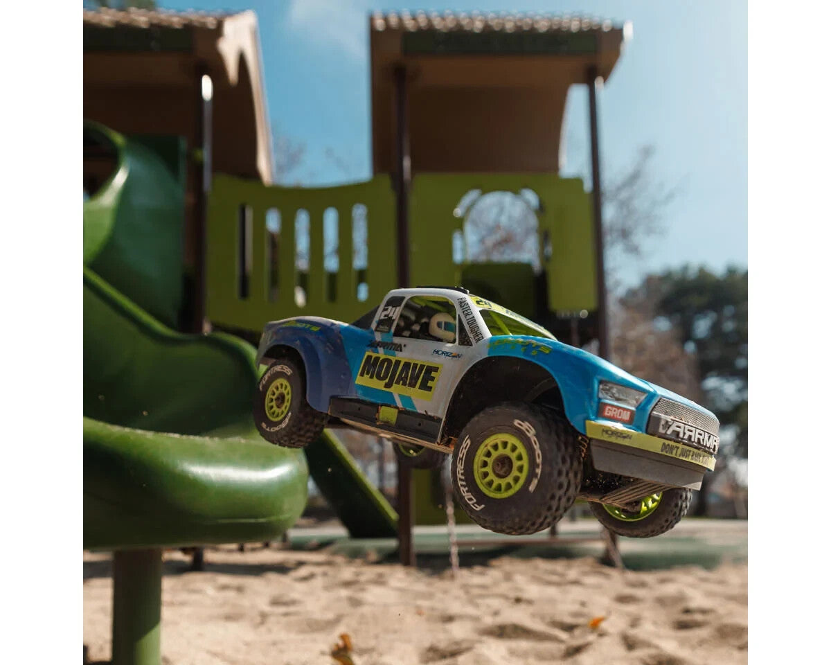 Off-road racing challenges full-size desert trucks with extreme tests of performance and endurance, and RC model versions encounter their own rigorous trials during intense bashing sessions. ARRMA’s models, like the small-scale MOJAVE GROM 4X4 Desert Truck, are built with legendary toughness to withstand these challenges. Featuring detailed desert truck aesthetics, the ready-to-run MOJAVE GROM brings the excitement of Baja-style action to enthusiasts of all skill levels. Agile and responsive like its larger counterparts, the 4S and 6S MOJAVE vehicles, the MOJAVE GROM offers the performance and durability that ARRMA is known for, in a portable size perfect for on-the-go bashing fun.