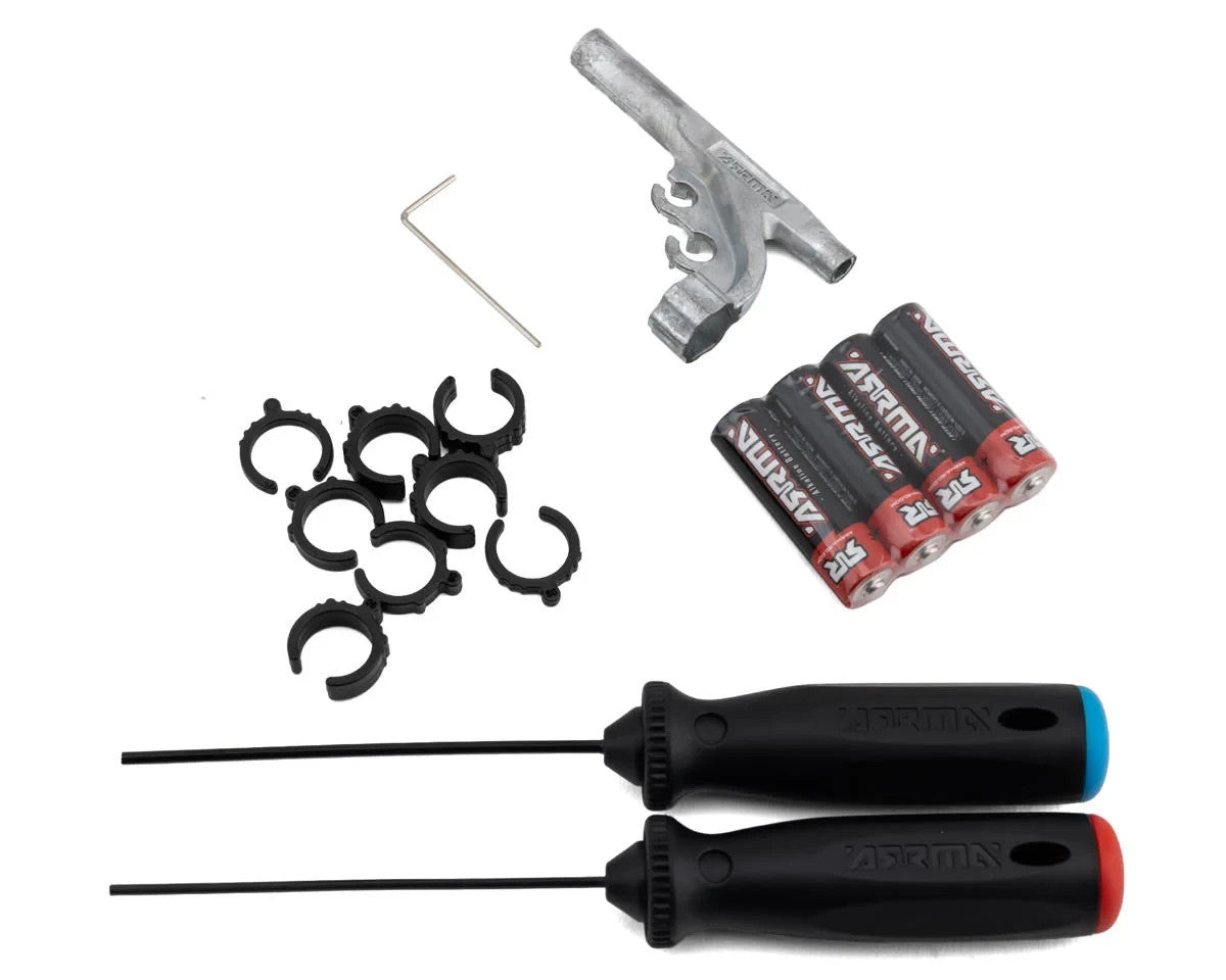 The SLT2 radio is your personal monster-taming remote. Whether you're tearing it up on 2S or lighting it up on 3S, the throttle limiting feature lets you choose how wild your ride gets — 50%, 75%, or full send. It's like a leash for a wild animal... until you decide to let it go. Bonus: four AA batteries are included, because we don't do half-sends.
