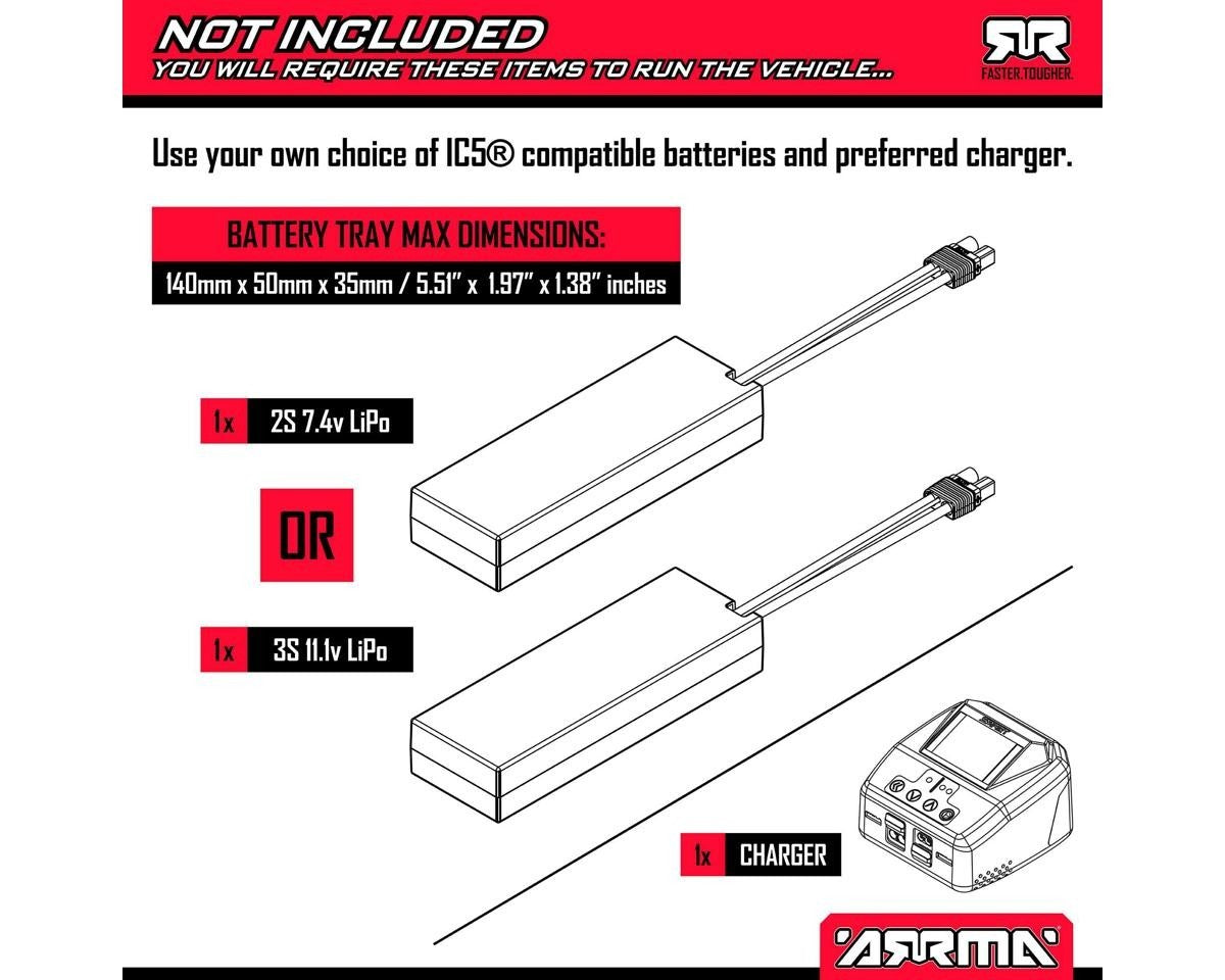 • (1) 2S or 3S LiPo Battery with IC5 Connector (7.4-11.1V)