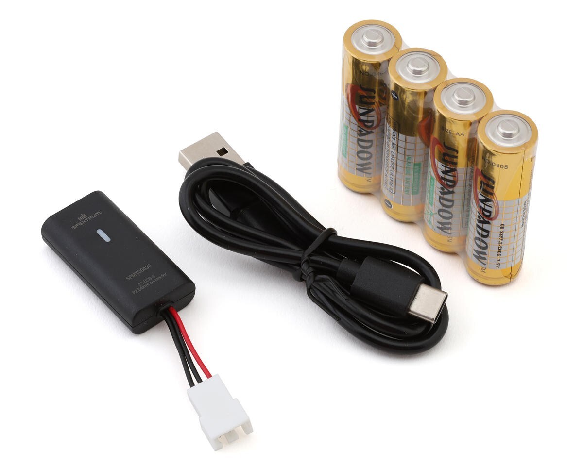 - Spektrum 350mAh LiPo battery and 0.5A USB-C charger