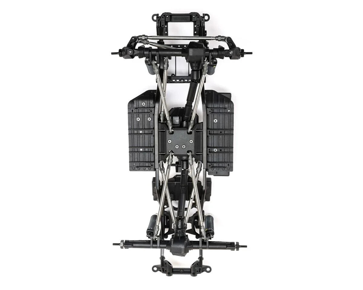 - Strong, adjustable SCX10 III steel C-channel chassis