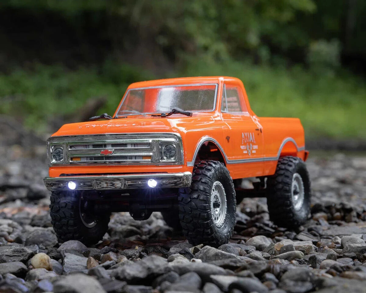 The Axial SCX24 1967 Chevrolet C10 1/24 4WD RTR Scale Mini Crawler with 2.4GHz radio is hitting the scene ready for RC adventures. Despite being scaled down to a compact size, this mini crawler is ready for some big adventures. Get bored at work? Crawl this guy across your desk, we won't tell HR. That laundry you forgot to put away is now a mountain for your SCX24 to climb and conquer. Take this car outside, where its water-resistant electronics are safe from the elements, and make your own course from whatever sticks and rocks are in your yard or local park. The possibilities are endless with this mighty mini.