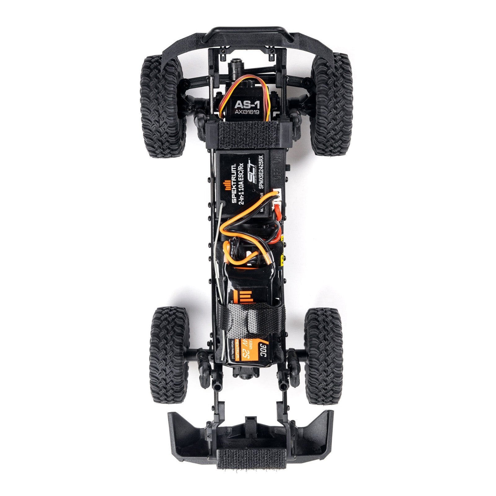 One of the most successful micro platforms of all time, the Axial SCX24 is also one of the best values in the RC crawling hobby. Inside the box, along with the assembled and finished rig, you'll find a Spektrum SLT2 2.4GHz transmitter, 350mAh LiPo battery, and handy USB charger. Even the AA transmitter batteries are included. For big adventures in micro RC crawling — at a small price — come to the SCX24 Base Camp!