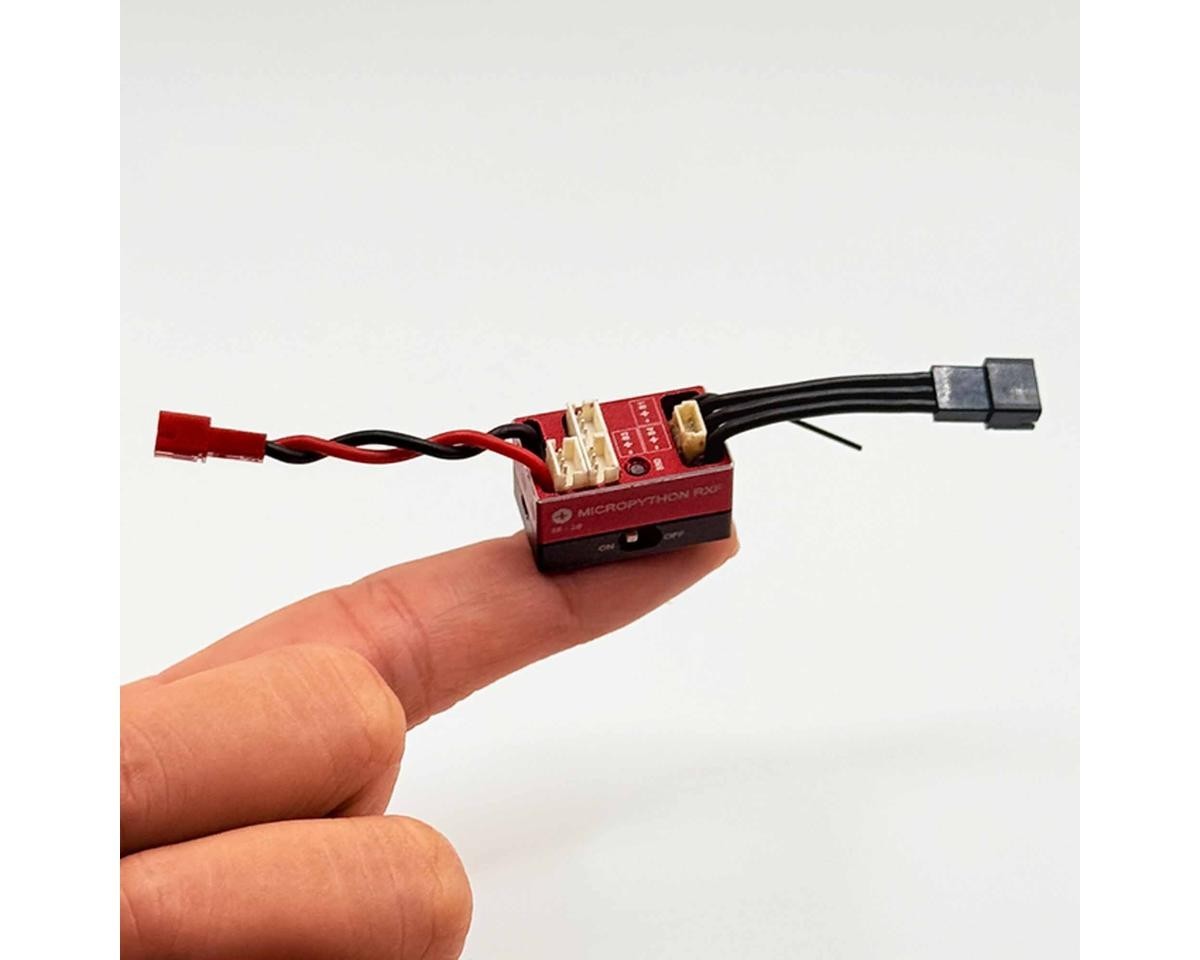 The Furitek MicroPython RXF combines a brushless ESC and built-in 4-channel receiver into one ultra-compact unit. Its small footprint and upward wire layout save space in tight micro crawler builds, while eliminating the need for bulky external components. Perfect for SCX24, TRX-4M, and other micro platforms, this integrated design makes wiring simpler and cleaner than ever.