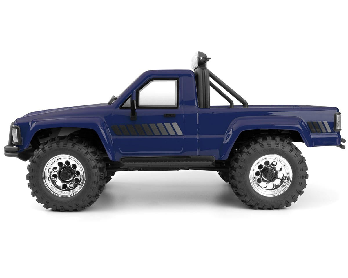 The officially licensed 1985 Toyota Hilux SR5 body gives the Venture18 incredible scale realism. Featuring a pre-painted polycarbonate body with clear windows, detailed grille, mirrors, and bumpers, this miniature truck looks just like the real thing. The adjustable rock rails and robust Rockthorn off-road tires mounted on CS-10 beadlock wheels enhance both performance and appearance. With sticky rubber treads that wrap around to the sidewalls, these tires provide maximum traction and control on any surface.