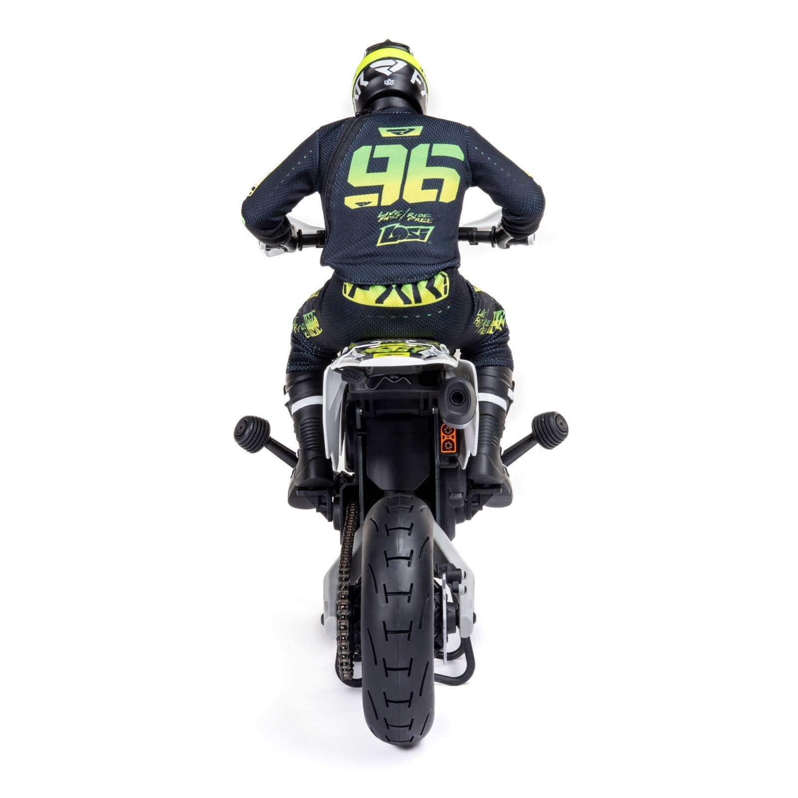 Both technologies, electronic and mechanical, are why the Promoto platform performs better at high and low speeds than any previous RC motorcycle. Now, with the Losi Promoto-SM, there's an RC bike that really works — with tarmac-ready performance and style!