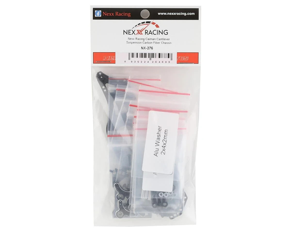 The NEXX Racing Axial SCX24 Carbon Fiber Caiman Cantilever Suspension Chassis Kit is a great way to improve the overall performance of the SCX24 platform. This optional chassis features a cantilever suspension system that allows the user to adjust the CG point by adjusting the length of the linkage. Plus the cantilever system offers multiple shock and link mount options, with increased flex using the stock length shocks. This upgrade is extremely light weight, and provides users with a unique, yet high performance SCX24 chassis option.