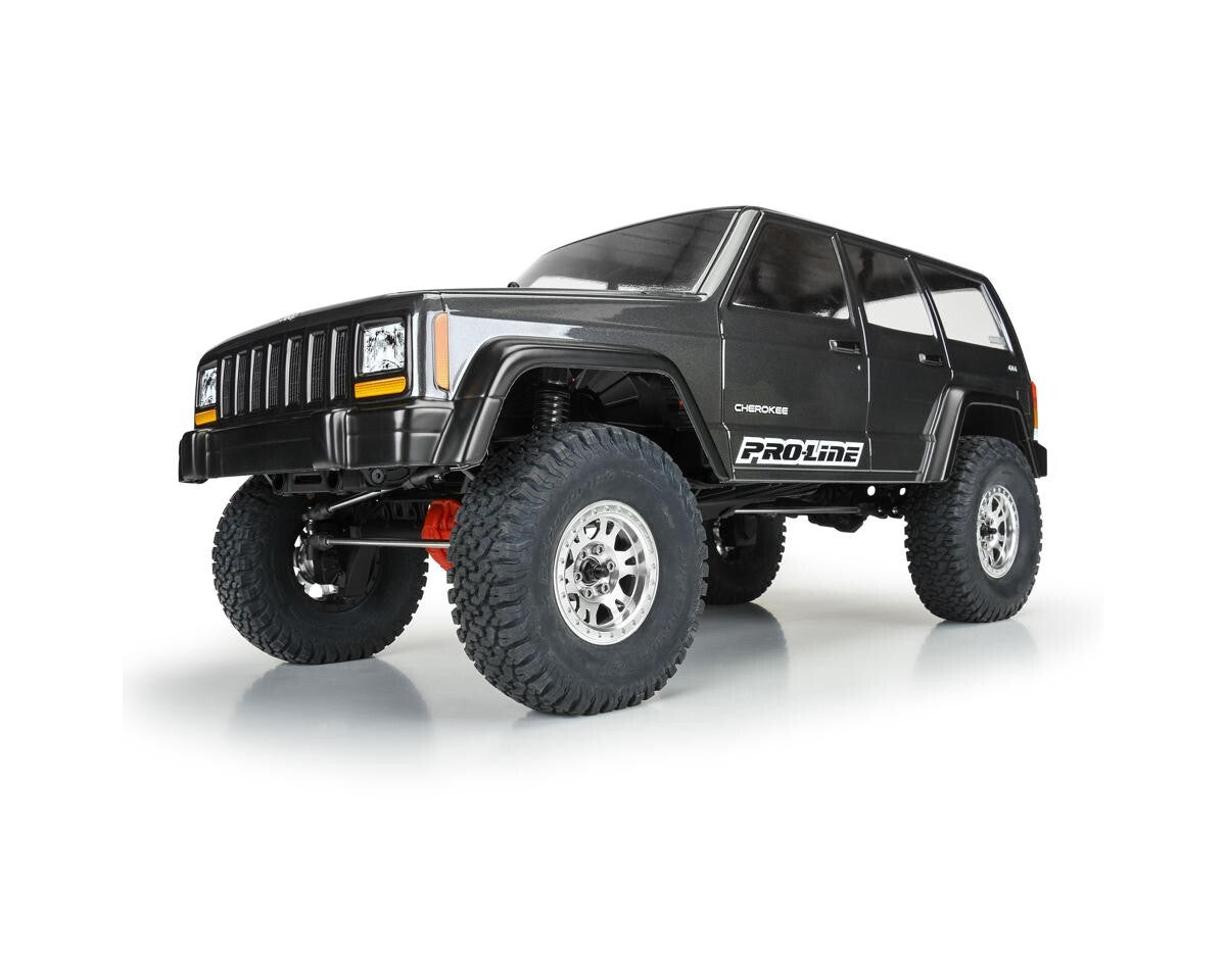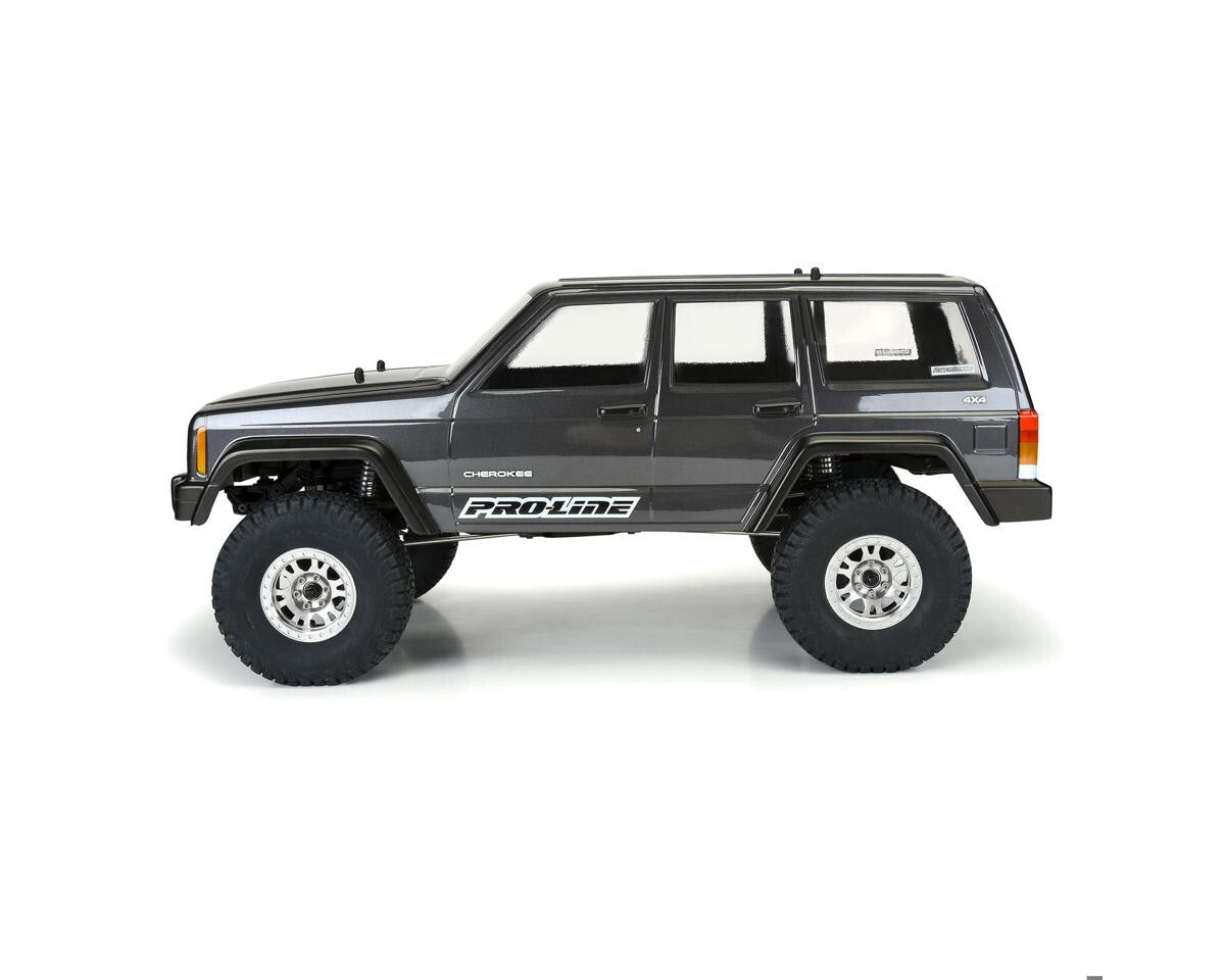 The Pro-Line 2001 Jeep® Cherokee 1/10 Rock Crawler Body brings the iconic look of the 2001 Jeep® Cherokee to your scale crawler, perfect for off-road enthusiasts who want a classic design for their Axial® SCX10™, Element Enduro, or any Rock Crawler equipped with a 313mm wheelbase. Made in the USA from high-quality polycarbonate, this body is highly durable and includes detailed decal sheets, window masks, and an easy-to-use paint-and-peel overspray film. Whether you want a stock appearance or a highly customized crawler, this officially licensed Jeep® body is a must-have that is sure to make your crawler stand out on the trails.