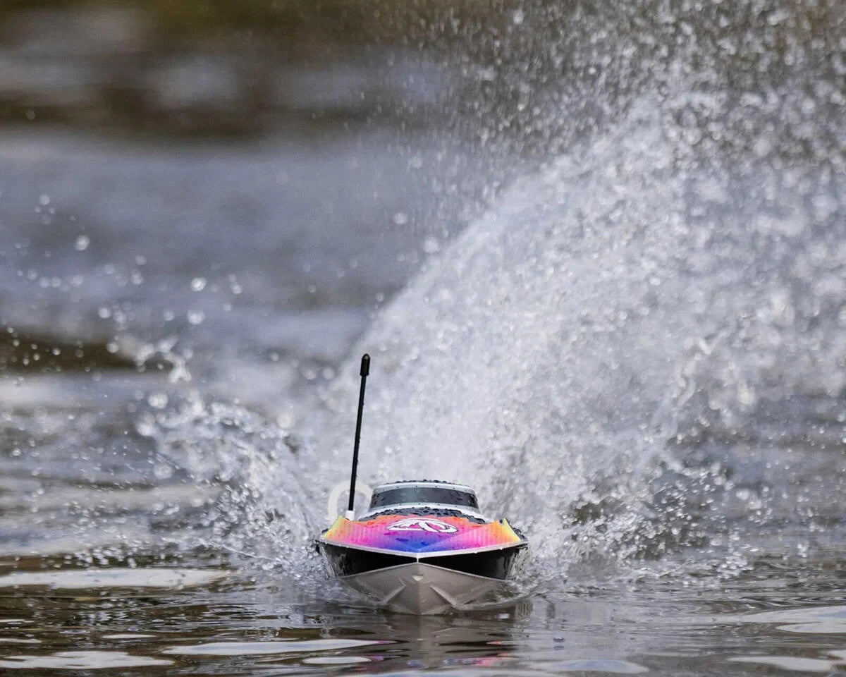 The compact Recoil 2 18” fits easily into your car to take wherever a suitably sized body of water waits. It also fits conveniently into a backpack of your choice, for carrying to those epic small ponds that require a hike. It’s not for your backyard pool, but will be right at home cutting loose at your local pond or small lake. With its ready-to-run simplicity, custom Heat Wave or Shreddy liveries, and worry-free self-righting, the Pro Boat Recoil 2 18” deep-V brings big fun to mini RC boats!