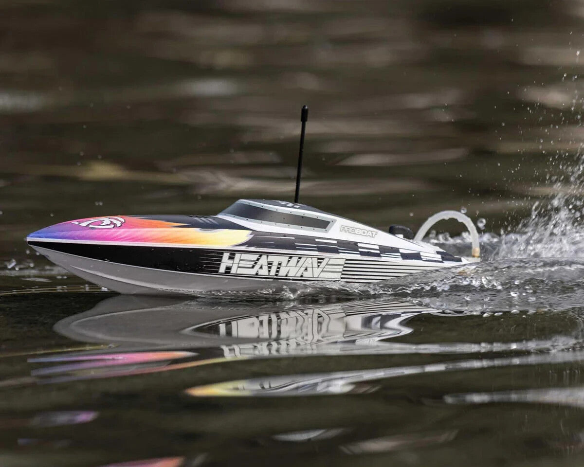 Affordable, easy to run, and conveniently sized, the Pro Boat Recoil 2 18” is perfect for anyone just starting out in the RC boat hobby. There’s also plenty here to capture the hearts of experienced boat modelers. As Pro Boat’s only high-performance mini boat, the Recoil 2 18” wears the best liveries on its high-impact ABS hull. Pro Boat partnered once again with Heat Wave Sunglasses and Shreddy with the help of Blake Wilkey to outfit the Recoil 2 18” with your choice of two sweet-looking, officially licensed trim scheme options.