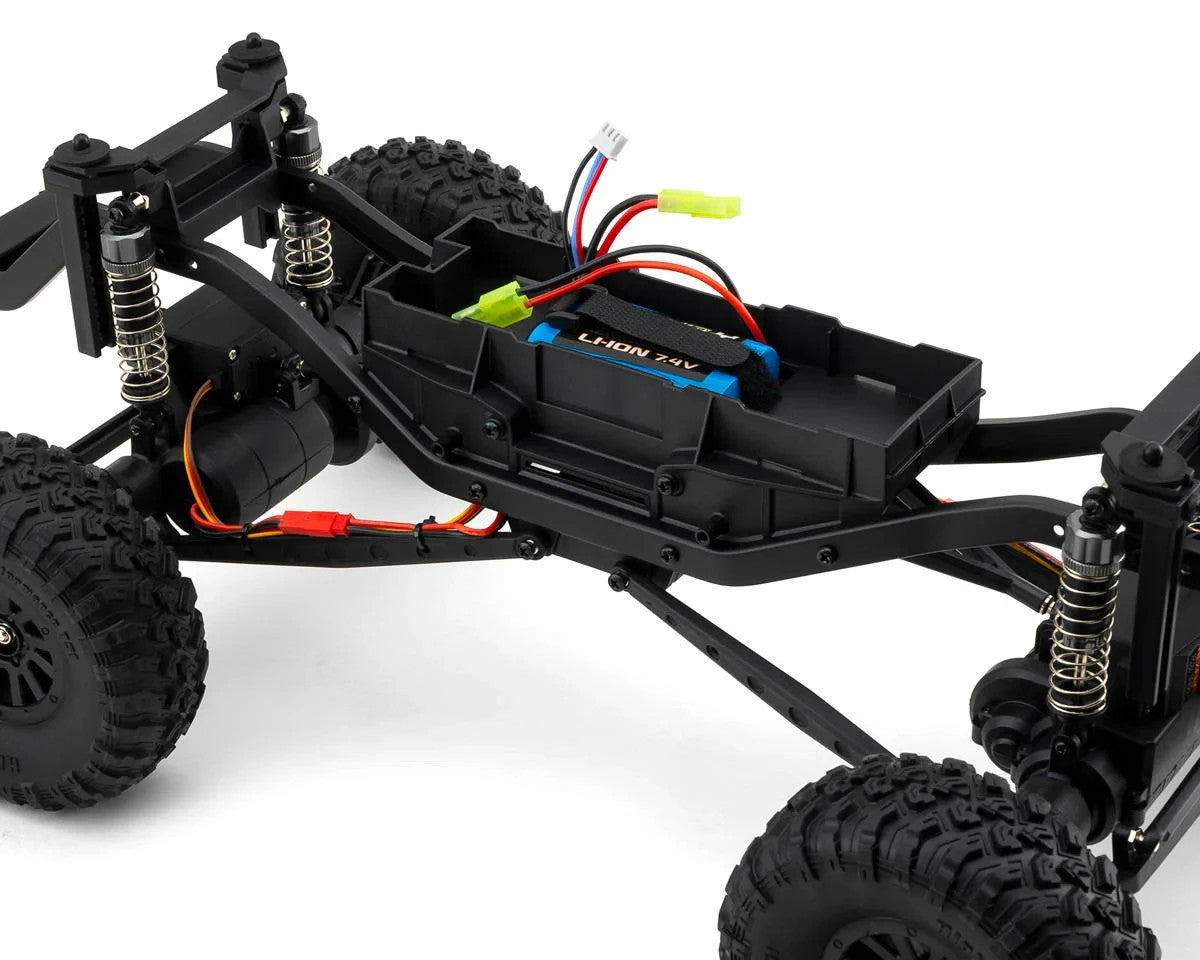 Unique to the Ridgerunner is the inclusion of a "Dig function," a feature typically reserved for expensive competition-style rock crawlers. With a simple press of the rear lock button, the rear wheels lock in place, allowing the front wheels to pull the crawler through tight turns and challenging obstacles. This feature adds an extra layer of versatility to the Ridgerunner's capabilities, making it an attractive choice for enthusiasts seeking a crawler with advanced functionalities.