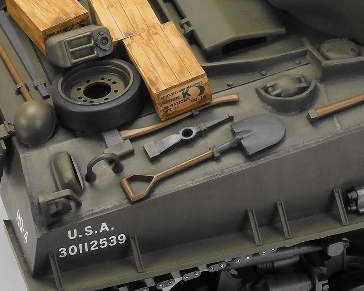 The Tamiya 1/16 M4 Sherman 105mm Howitzer R/C Tank captures the spirit and engineering of one of WWII’s most iconic armored vehicles. Modeled after the late-production fire support variant, it features the distinctive 105mm howitzer, famously used to engage fortified positions and support advancing infantry across both European and Pacific theaters. The tank’s HVSS suspension and accurately detailed hull construction mirror the real Sherman’s rugged battlefield presence.