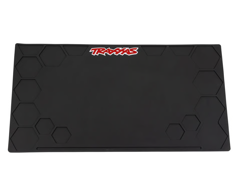 The Traxxas Rubber Pit Mat is designed to provide a clean, organized, and protective surface for working on RC vehicles. Its heavy-duty rubber construction helps prevent damage to both your workspace and your vehicle by keeping parts secure and reducing the risk of scratches or spills. The non-slip surface ensures tools and components stay in place during maintenance or assembly.