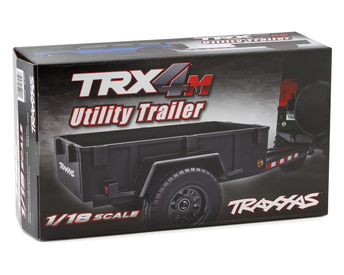 Traxxas® TRX-4M™ Utility Trailer with Hitch. This is an optional accessory designed to expand the functionality and fun of your Traxxas TRX-4M 1/18 Micro Rock Crawler. This trailer mimics the look of full-sized utility trailers, adding a touch of realism to your RC adventures. Equipped with an easy-to-use hitch system that allows for quick and secure attachment, you can stow away your scaled accessories and haul them wherever your TRX-4M adventures take you. To further add to the scale realism, Traxxas has introduced a functional light kit (TRA9790) and Utility Trailer Side Panels (TRA9798) that are available for purchase separately. These additional accessories can be attached directly to this trailer for all of your hauling needs. This trailer is pre-assembled and ready to attach to your TRX-4M, ensuring a quick and easy start to trailer-hauling fun right out of the box.