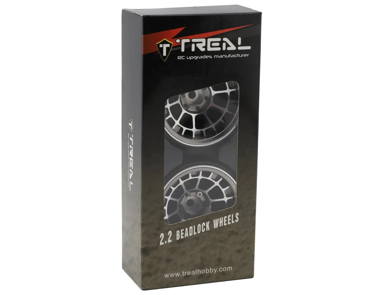 Treal Hobby 2.2" Type-A Beadlock Wheels. Constructed from top quality CNC machine aluminum, These optional beadlock rims are intended for 1/10 Scale rock crawlers to enhance scale realism, style, durability, and performance! Features an easy to mount beadlock design and removable standard 12mm hex hub, to use different hub types and tune your offset to your liking and driving style! In addition, multiple colors are available to choose from allowing you to customize the look and style of your rig all while adding approximately 230g of total unsprung weight down low to improve the lower center of gravity for enhanced and more stable crawling performance!