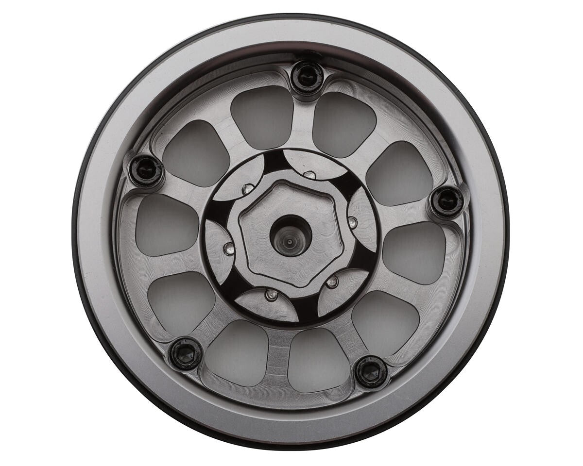 Treal Hobby Type V2 1.9" 10-Spoke Beadlock Wheels. Constructed from top quality CNC machine aluminum with interchangeable steel heavy center ring, These optional beadlock rims are intended for 1/10 Scale rock crawlers to enhance scale realism, style, durability and performance! Features a scale 6-Spoke rim on an easy to mount beadlock design and removable standard 12mm hex hub. In addition, multiple colors are available to choose from allowing you to customize the look and style of your rig all while adding 468g of total unsprung weight down low to improve the lower center of gravity for enhanced and more stable crawling performance!