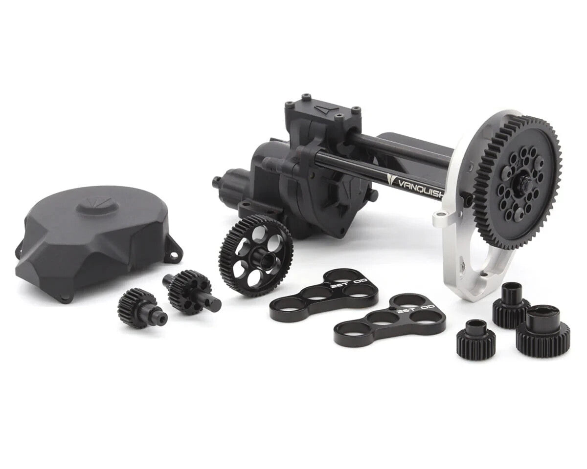 In the center of the VRD Carbon Kit is the updated lightweight spec VFD transmission equipped with a lightweight machined aluminum motor plate and aluminum motor plate standoffs. In addition, internally the VFD is equipped with CNC-machined aluminum bearing plates and machined lightweight chromoly gears to boost stability, reliability and crawling capabilities. Each internal gear has been re-designed to be as lightweight as possible dropping the weight of the overall transmission while maintaining a high level of durability!
